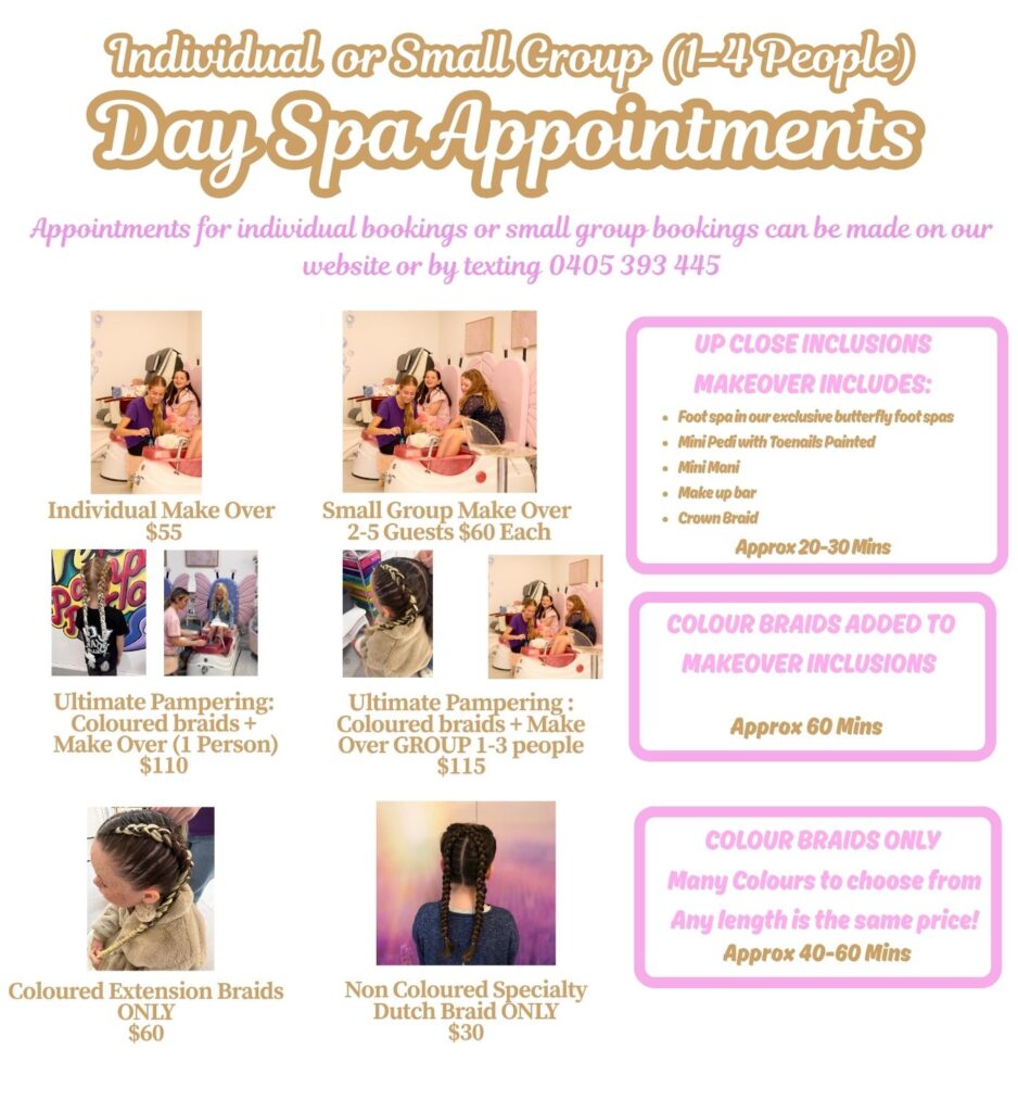 If you would like coloured braid appointment other than these times, we can arrange via appointment. Please text 0405 393 445